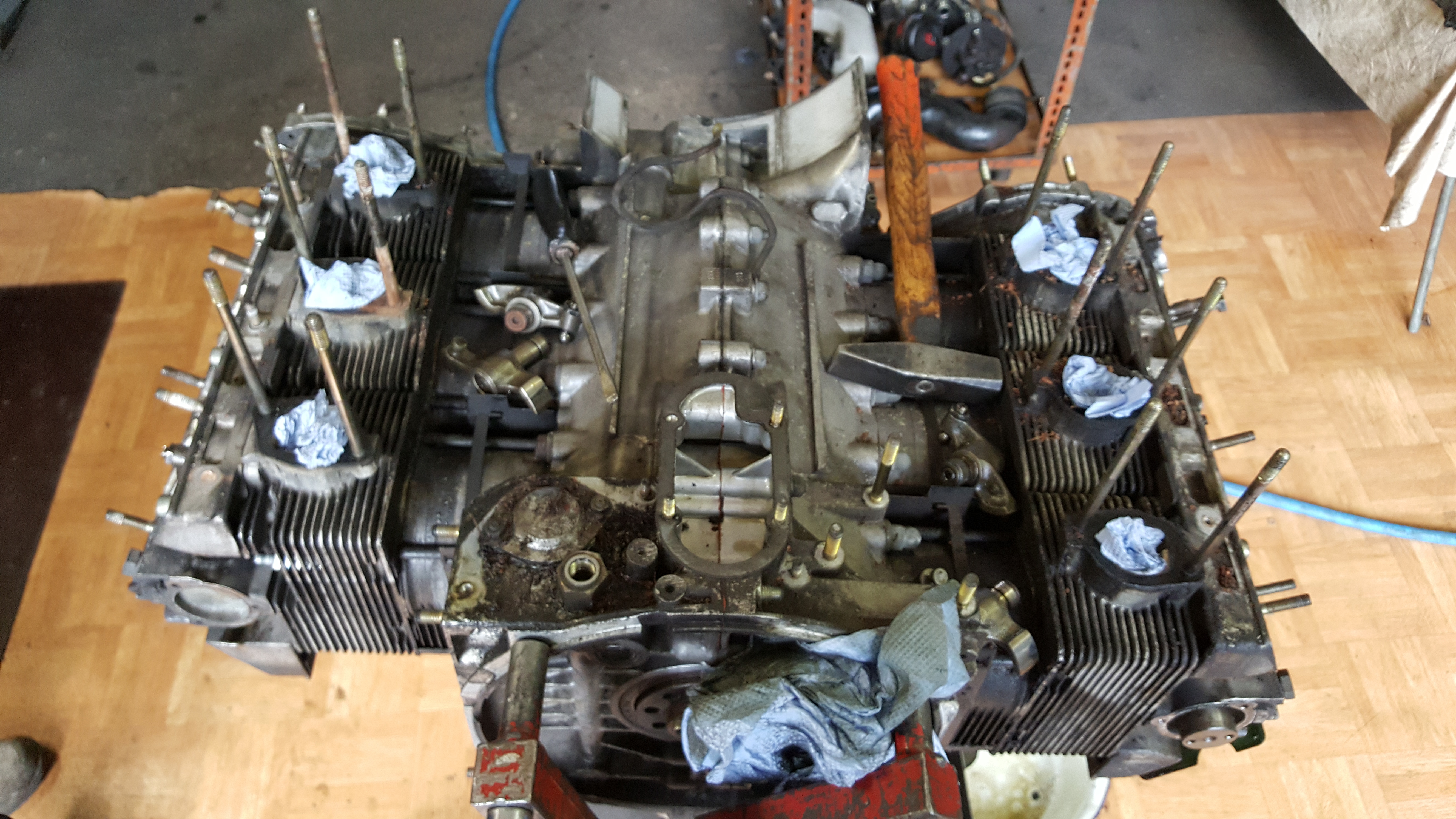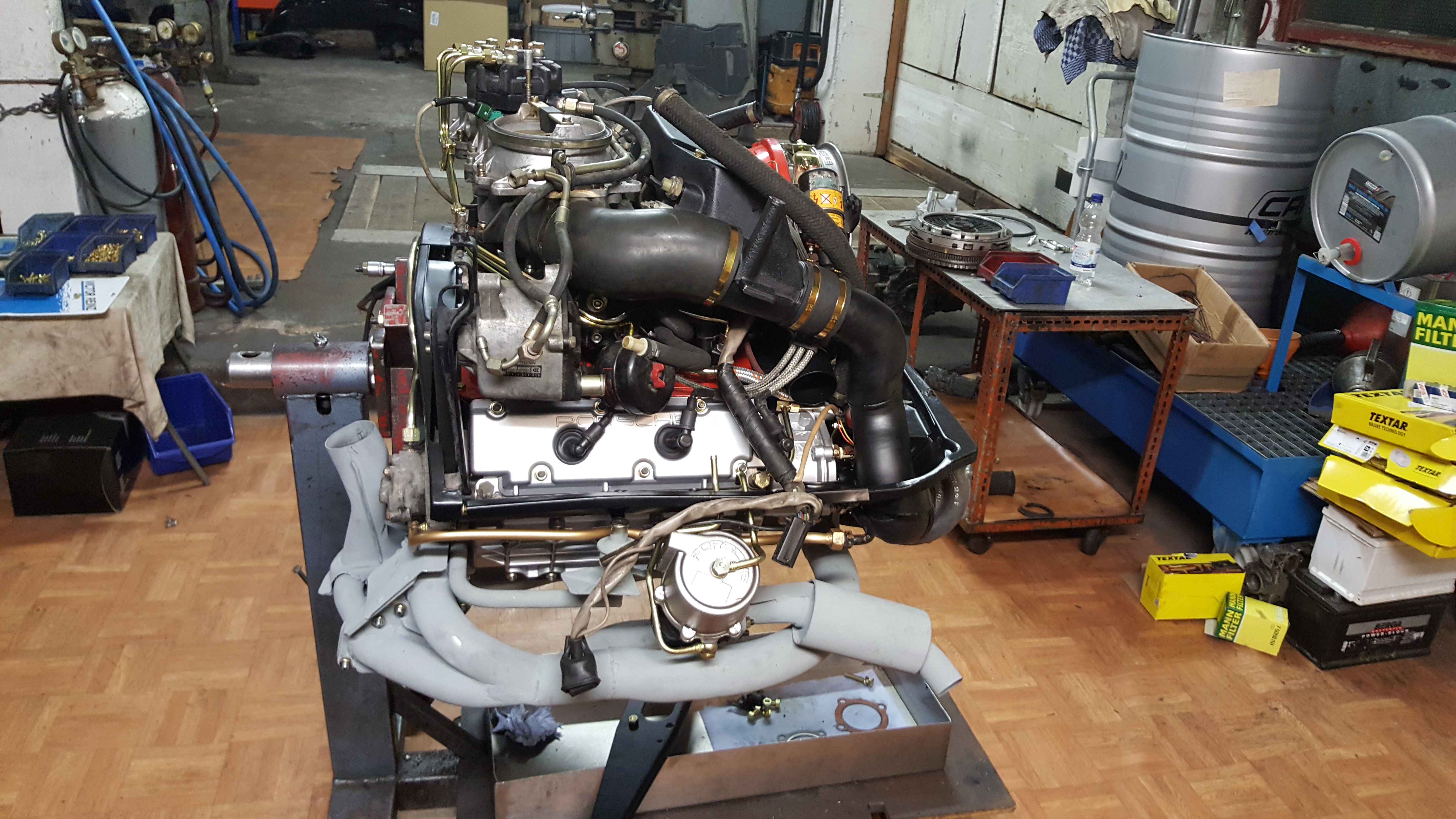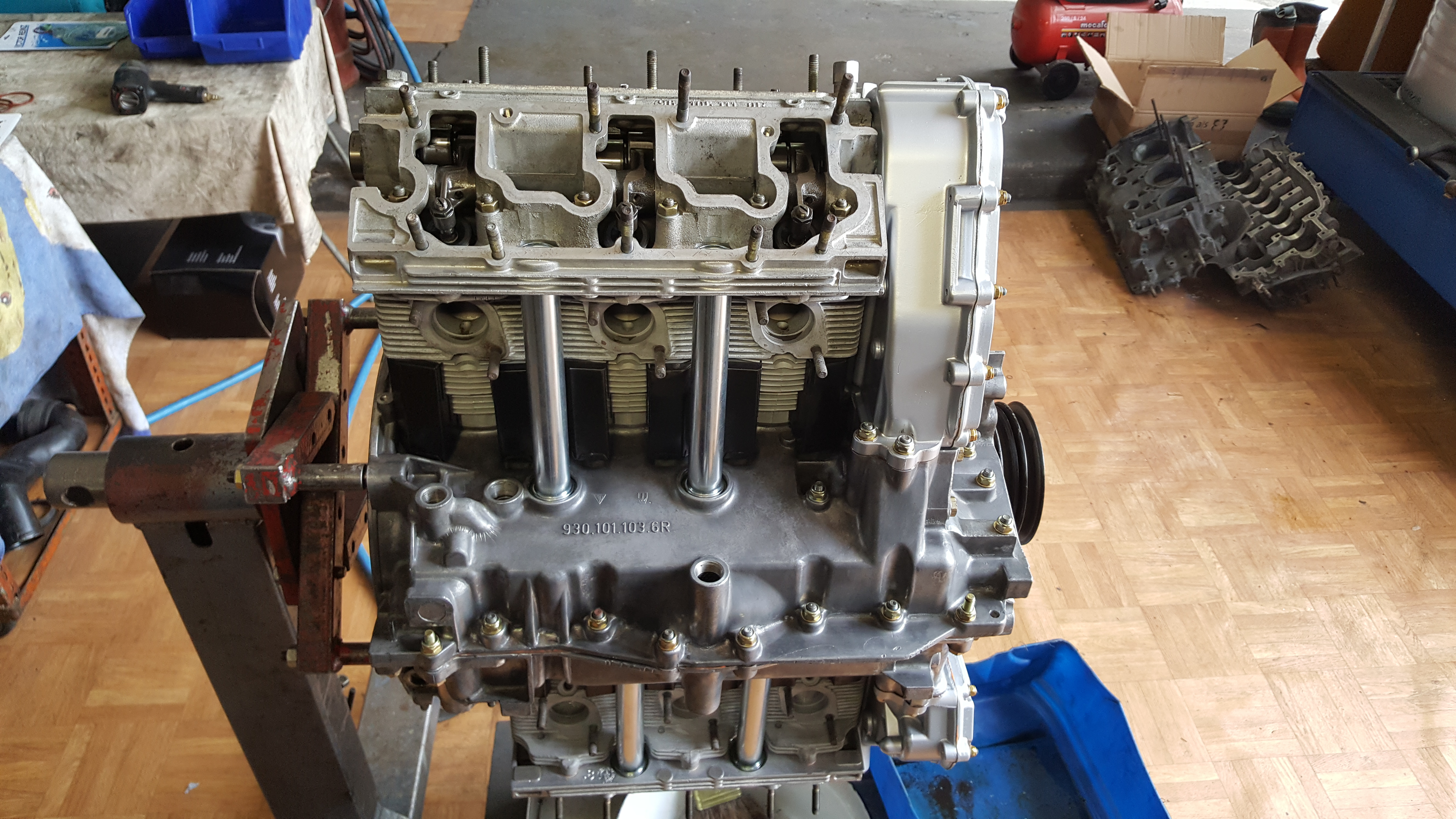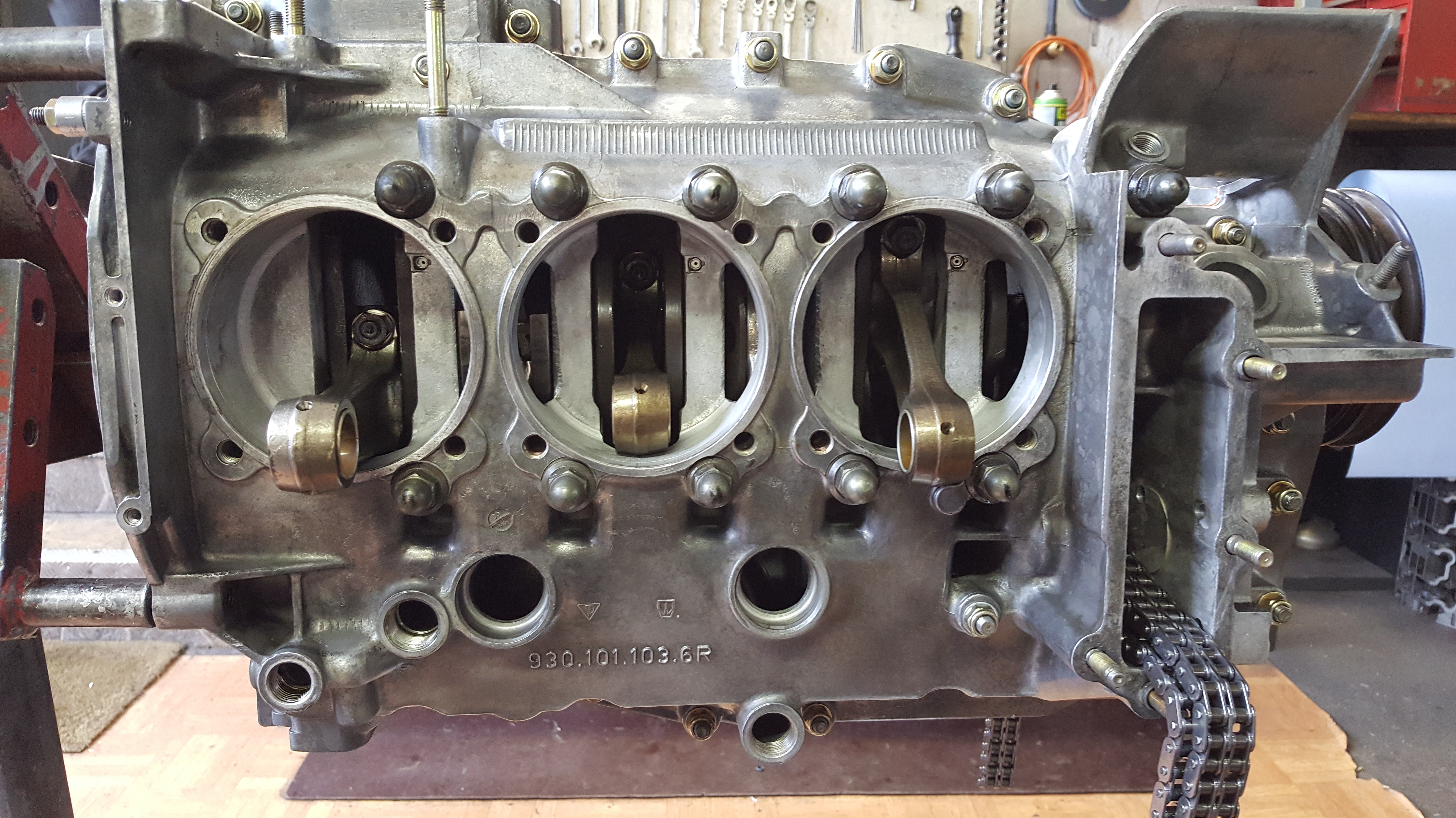 Motorrestauration eines Porsche 930 Turbo 3.3 Ladmin2018-03-25T11:08:52+00:00 Motorrestauration eines Porsche 930 Turbo 3.3 LDemontage des ausgebauten 3.3 L Turbo Motors Zylinderköpfe und Auslassventile gereinigt und glasperlengestrahlt , anschließend Montage der neuen Ventilführungen; Ventilsitze nachfräsen; Zylinderköpfe fertig geplant und zusammengebaut; Neue Steuerketten, verstärkter Zuganker (10 mm), neue Haupt- und Pleuellager; Überholte Zylinderköpfe mit neuen Kolben und Laufbuchsen des Herstellers Mahle; Zusammenbau des Motorblocks; Montage der neuen Kolben- und Laufbuchsen und der Zylinderköpfe; Nockenwellentürme, Kettenkästen und Nockenwelle montiert, anschließend Steuerzeiten eingestellt; Neulackierung der Motorabdeckung; Motorverblechung sandgestrahlt und pulverbeschichtet; Wärmetauscher und Teile der Auspuffanlage sandgestrahlt; Neubeschichtete Wärmetauscher und Lufteinblasung montiert; Fertigstellung des Porsche 930 3.3 L Turbo Motors