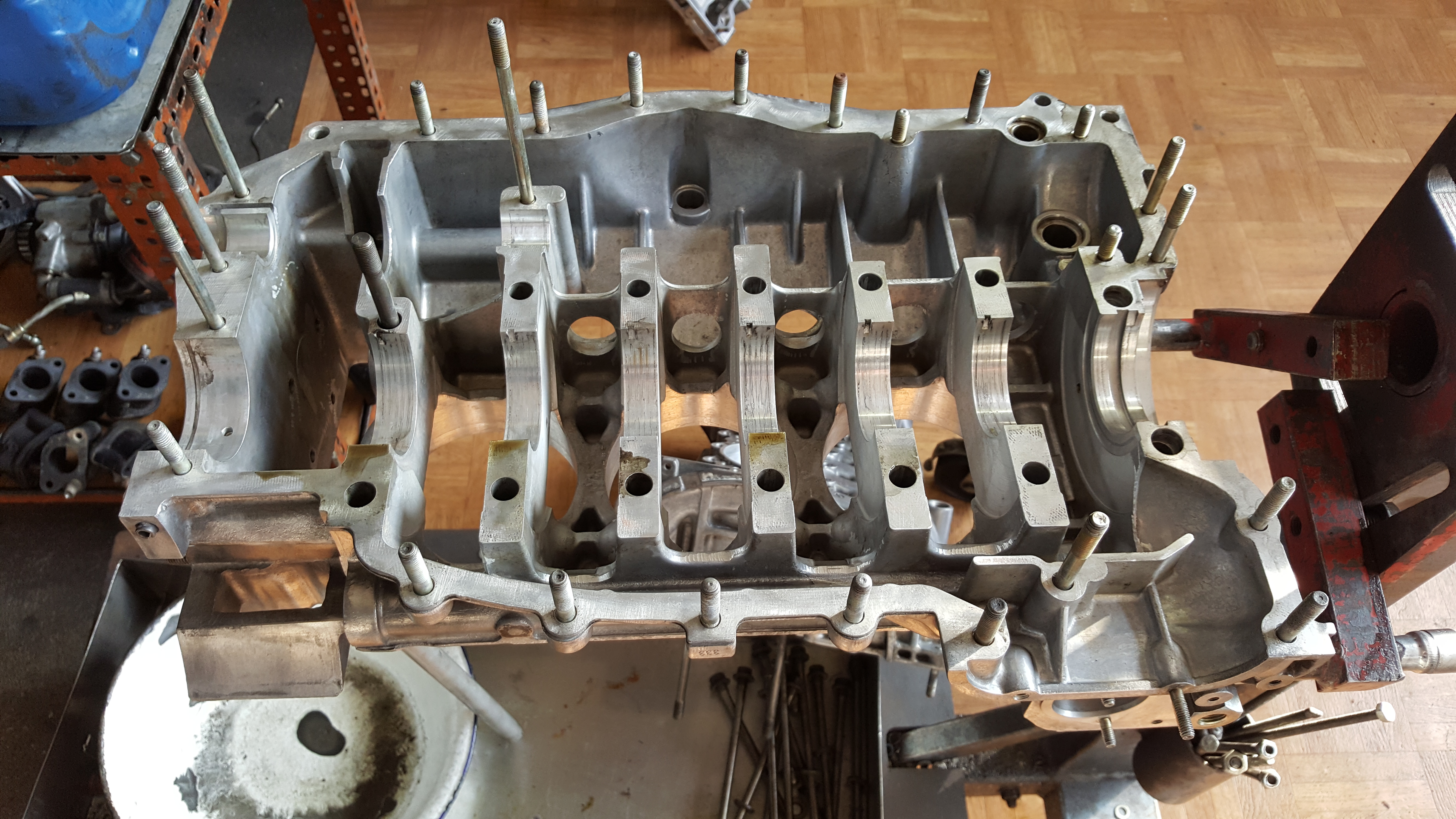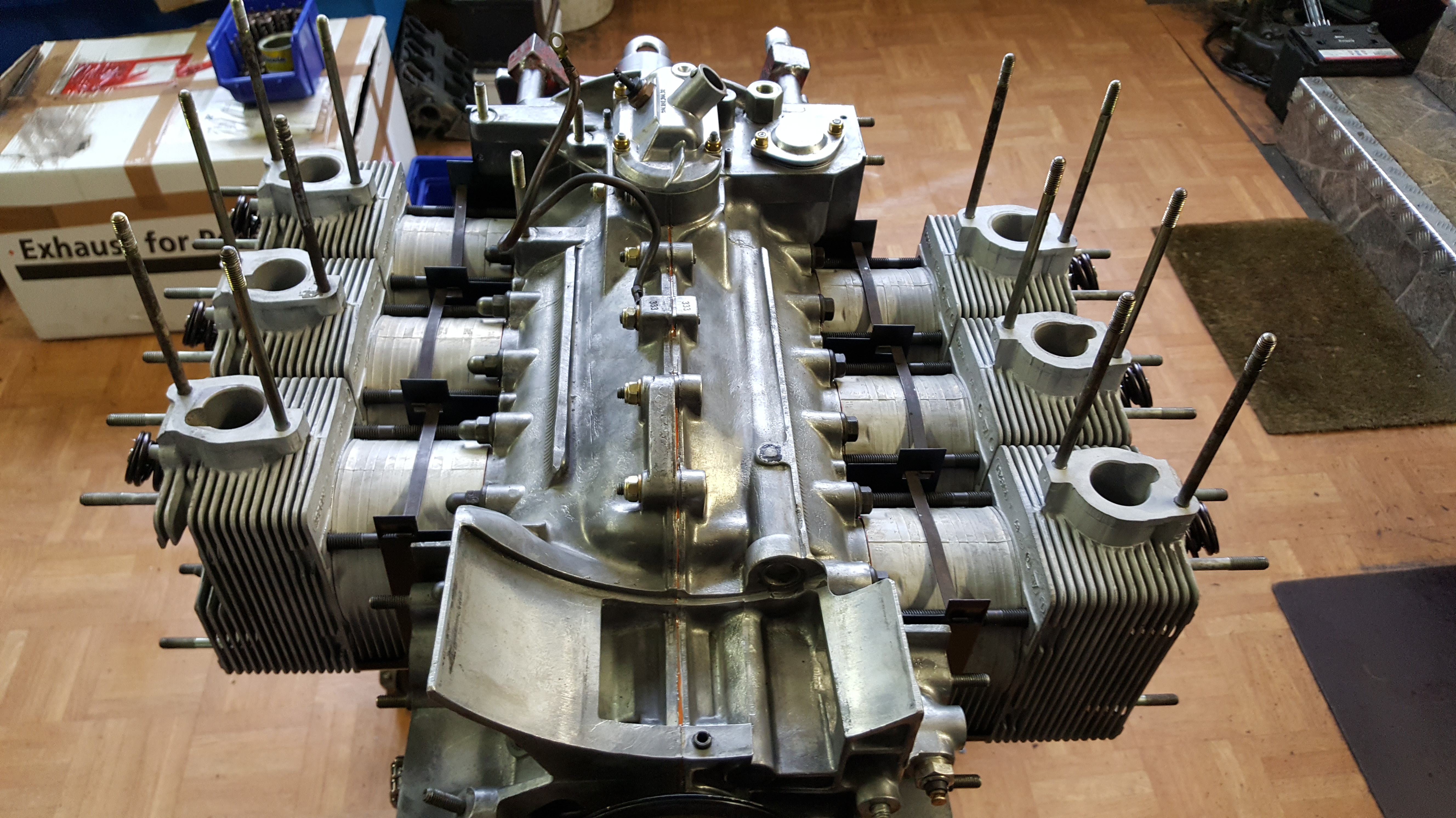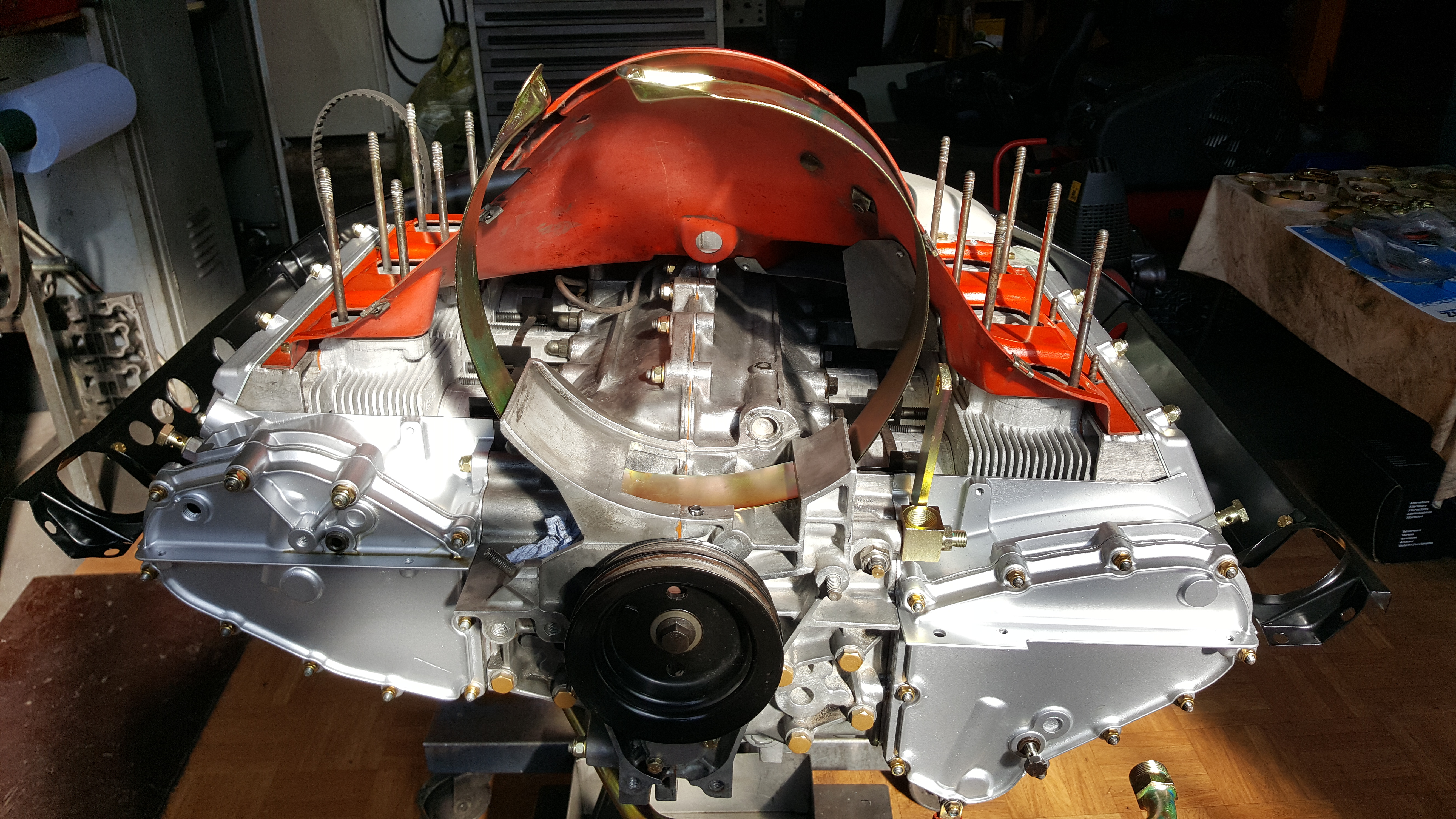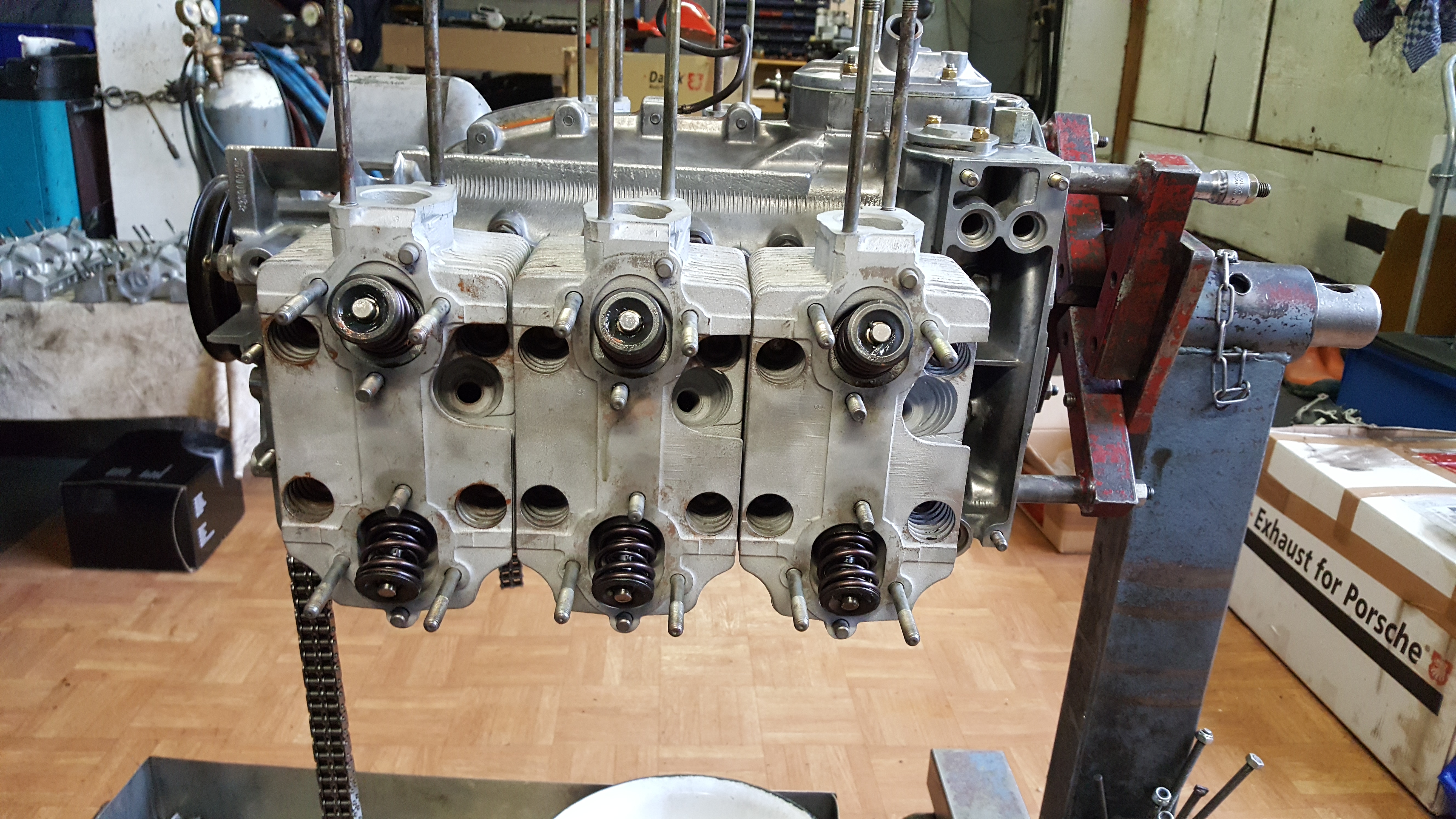 Motorrestauration eines Porsche 930 Turbo 3.3 Ladmin2018-03-25T11:08:52+00:00 Motorrestauration eines Porsche 930 Turbo 3.3 LDemontage des ausgebauten 3.3 L Turbo Motors Zylinderköpfe und Auslassventile gereinigt und glasperlengestrahlt , anschließend Montage der neuen Ventilführungen; Ventilsitze nachfräsen; Zylinderköpfe fertig geplant und zusammengebaut; Neue Steuerketten, verstärkter Zuganker (10 mm), neue Haupt- und Pleuellager; Überholte Zylinderköpfe mit neuen Kolben und Laufbuchsen des Herstellers Mahle; Zusammenbau des Motorblocks; Montage der neuen Kolben- und Laufbuchsen und der Zylinderköpfe; Nockenwellentürme, Kettenkästen und Nockenwelle montiert, anschließend Steuerzeiten eingestellt; Neulackierung der Motorabdeckung; Motorverblechung sandgestrahlt und pulverbeschichtet; Wärmetauscher und Teile der Auspuffanlage sandgestrahlt; Neubeschichtete Wärmetauscher und Lufteinblasung montiert; Fertigstellung des Porsche 930 3.3 L Turbo Motors